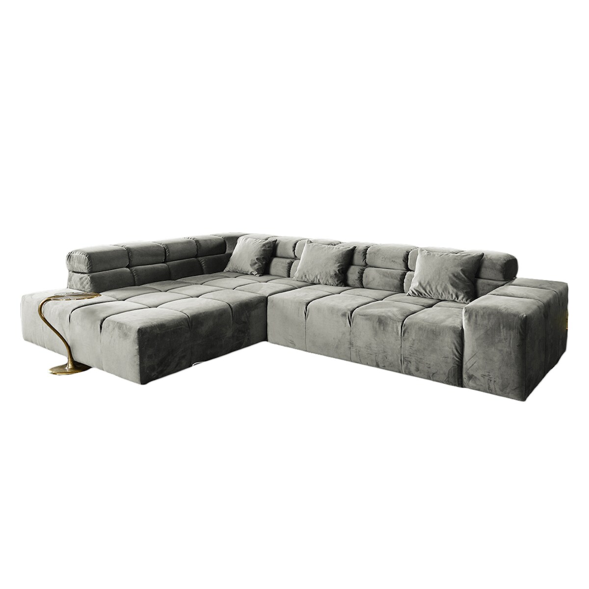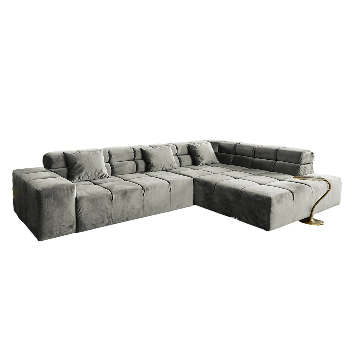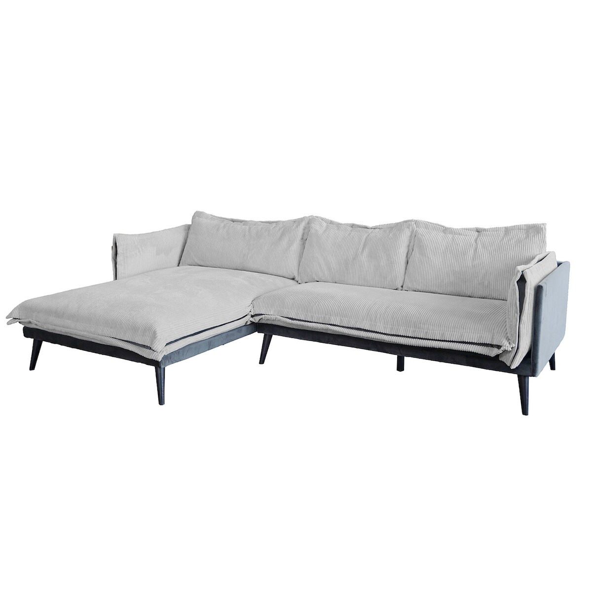 KAWOLA Sofa NEVADA Ecksofa Velvet silber Recamiere rechts