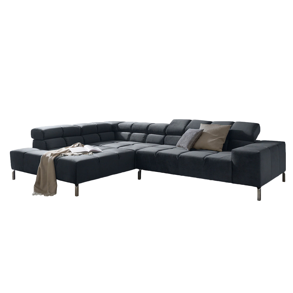 KAWOLA Sofa NELSON Ecksofa Velvet schwarz Recamiere links