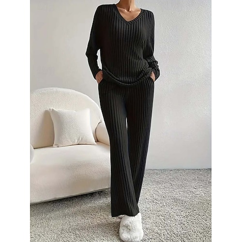 Per donna Elegante Caldo Vintage Set da due pezzi Manica Lunga Scollo a V Tinta unica All'aperto Casuale Quotidiano Nero Verde chiaro Marrone chiaro Primavera Vestibilità comoda