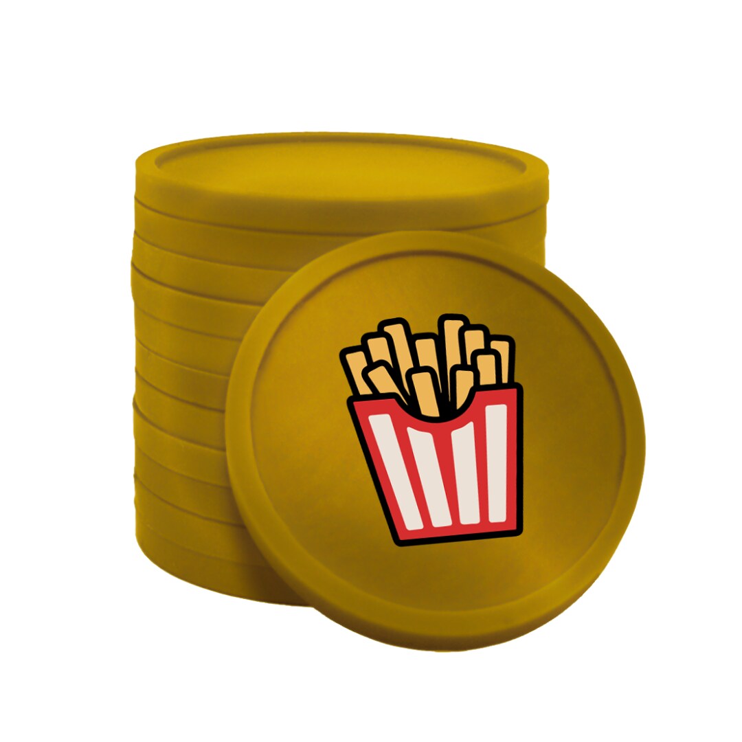 CombiCraft Kunststoff Wertmarken Chips Pommes in Gold- 100 Stück - Ø29 mm