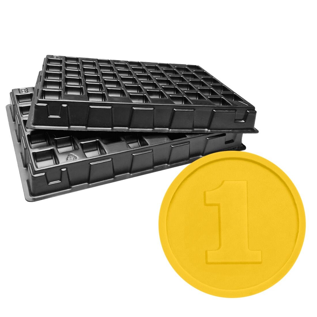 CombiCraft Wertmarken-Chips mit Reliefprägung „1“ in Gelb – 1.000 Stück inklusiv zwei Zählbrettern