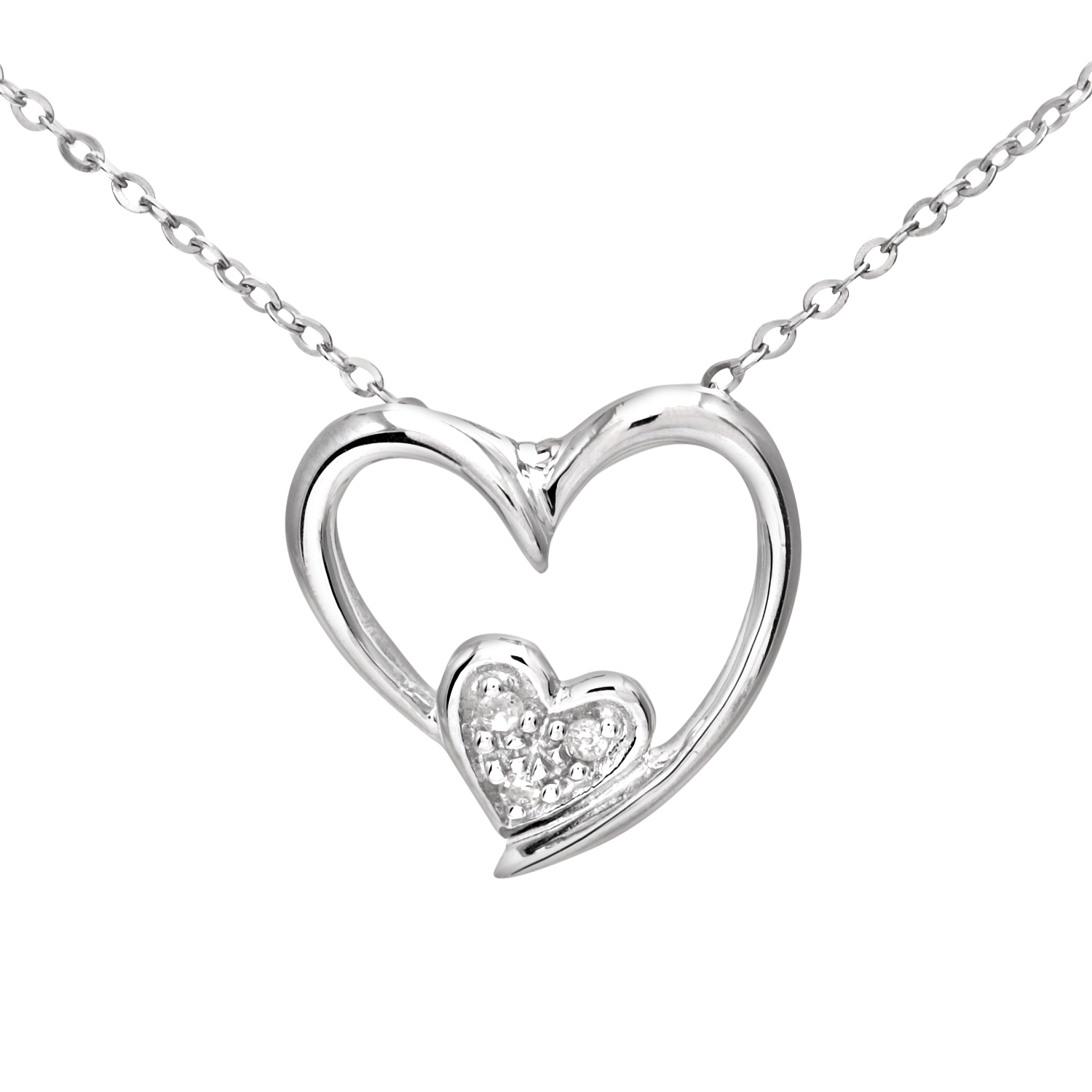 Diamant L'eternel Womens 9ct White Gold Pave Set Diamond Double Heart Pendant and 18" Chain - One Size