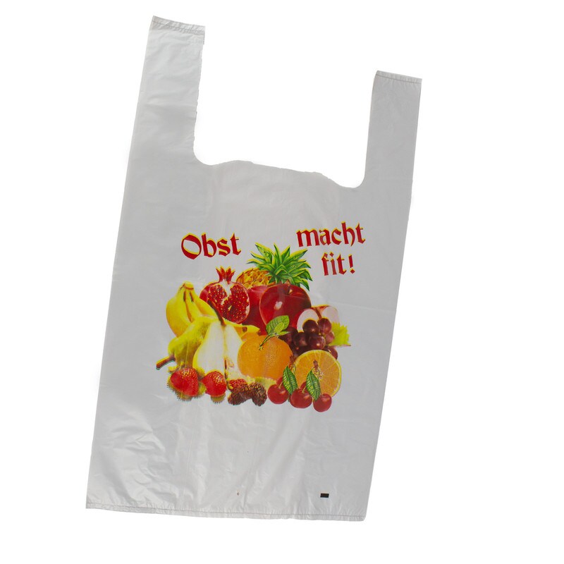 DayBays 60000 Stk. Hemdchentragetaschen 32+18x54 cm MDPE Mit Druck 'OBST MACHT FIT'