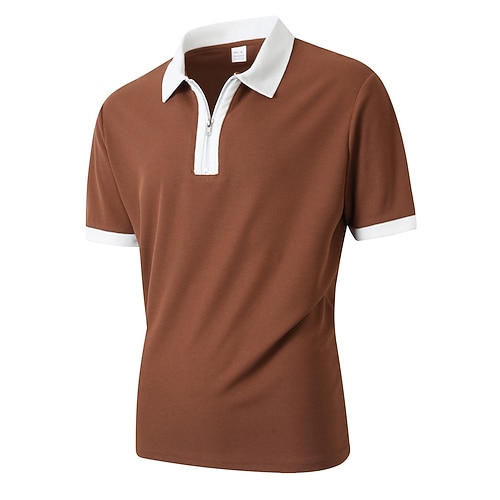 Per uomo Blocco di colori Polo Polo con zip Maglia da golf Manica Corta Bavero Moda Casual All'aperto Sport Quotidiano Splice Estate Nero Rosa Rosso