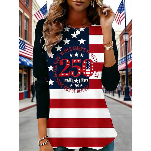 Maglietta Patriottica del Giorno dell'Indipendenza Maglietta Donna Grafica Bandiera USA Moda Stile Classico Maniche Lunghe Collo Rotondo Stampa Giornaliera Weekend Blu Nero Bianco Rosso