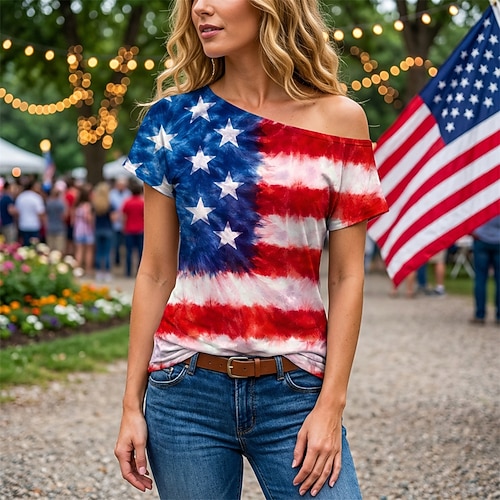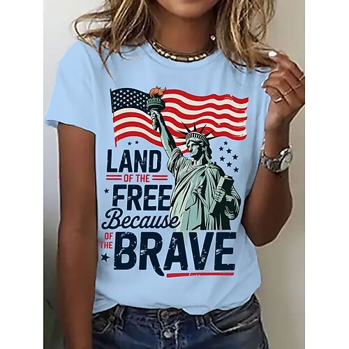 Giorno dell'Indipendenza Americana Per donna Maglietta Stampato Grafico Bandiera Lettera Elegante Classico Casual Manica Corta Girocollo Top Regolari Quotidiano Blu Nero Bianco Estate Primavera