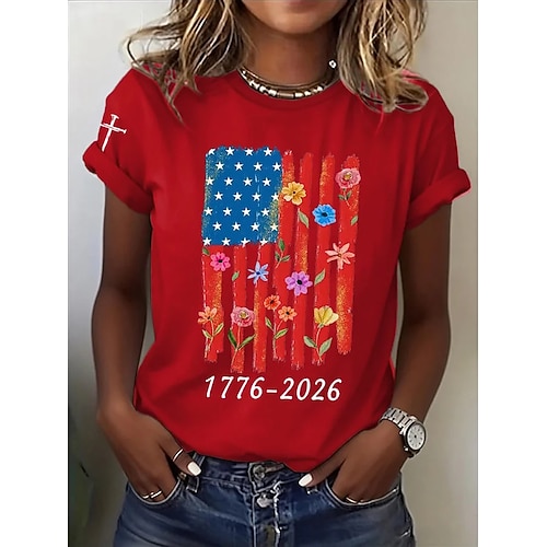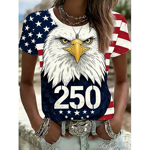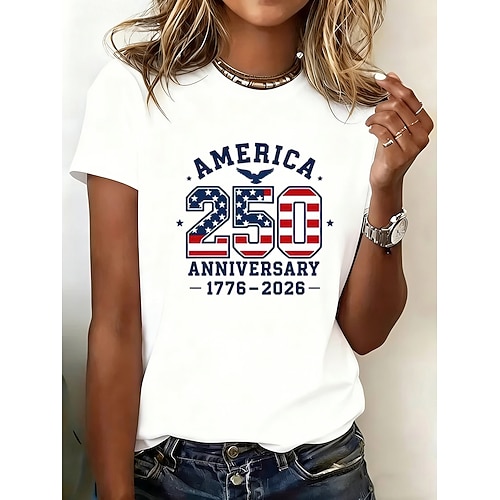 Giorno dell'Indipendenza Americana 250° Anniversario Maglietta Patriottica da Donna Maglietta Grafica Bandiera Nazionale Vintage Elegante Classica Maniche Corte Collo a Girotondo Giornaliera Weekend