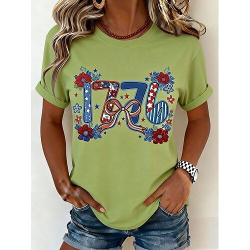 Giorno dell'Indipendenza Americana Per donna Maglietta Stampato Grafico Bandiera Lettera Elegante Classico Casual Manica Corta Girocollo Top lunghi Quotidiano Blu Giallo Rosa Verde Beige Estate