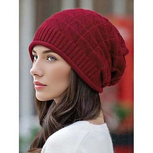 Per uomo Unisex Berretto Cappelli Invernali Berretti Cappello lavorato a maglia Berretto Invernale Nero Vino Poliestere Lavorato a maglia Pile Traspirante Accogliente Abbigliamento quotidiano Uscire