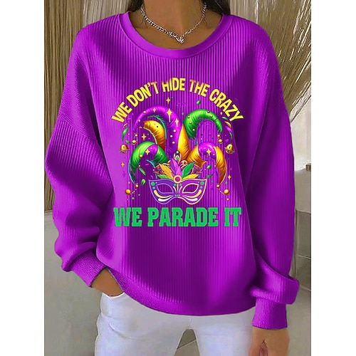 Maglietta da donna per Pasqua a manica lunga Collo tondo Maglietta a manica lunga Tunica Grafica a Quadri Vintage Elegante Classica Collo Tondo Top Regolari Quotidiana Stampa Nera Rossa Blu Viola