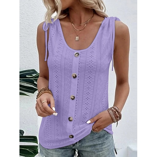 Per donna Canotta Traforato Bottoni Semplice Moda Elegante Classico Senza Maniche Collo a U Top Regolari Quotidiano Uscire Weekend Nero Bianco Giallo Vino Viola Estate Primavera