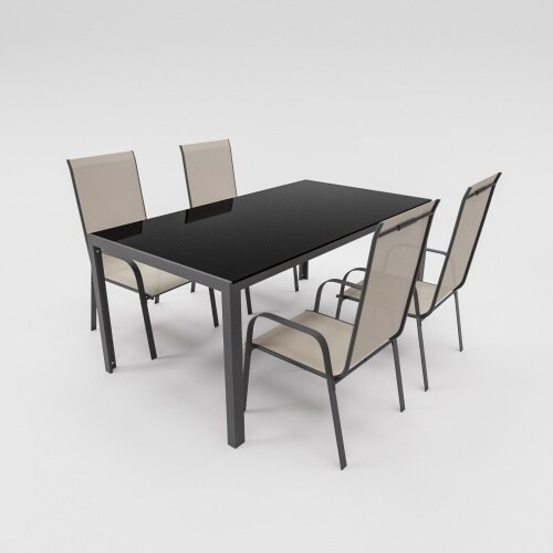 Tectake Lot de 4 chaises en rotin résistantes aux UVs capacité charge 120kg Noir 67x90x58cm