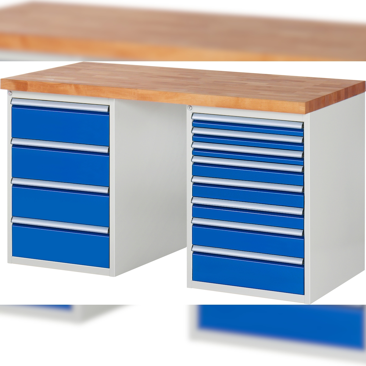 PROREGAL Werkbank Serie 7000 - Modell 7822 | HxBxT 89x150x70cm | 12x Schublade | Schubladenmaße 3x60 + 3x90 + 1x120 + 4x180mm