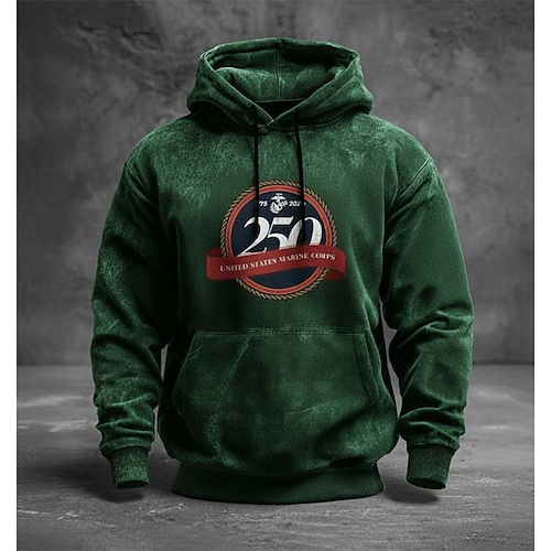 Felpa con cappuccio da uomo, grafica, 250° anniversario, moda streetwear, quotidiano, vintage, retrò, con cappuccio, per attività all'aperto, per le vacanze, streetwear, rosso, marrone, verde, grigio,