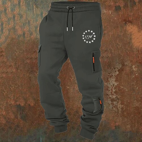 Per uomo Pantaloni Cargo Pantaloni da tuta Joggers Pantaloni Coulisse Tasca Elastico in vita Bandiera Americana Comodità Traspirante Casuale Quotidiano All'aperto Moda Stile Classico Nero Bianco