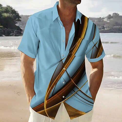 Per uomo Geometrico Onde Arte astratta Camicia Camicia Estiva Camicia con Bottoni Manica Corta Moda Casual Vacanza Ferie Abbigliamento casual alla moda Estate Collo ripiegato Stampa 3D Una tasca