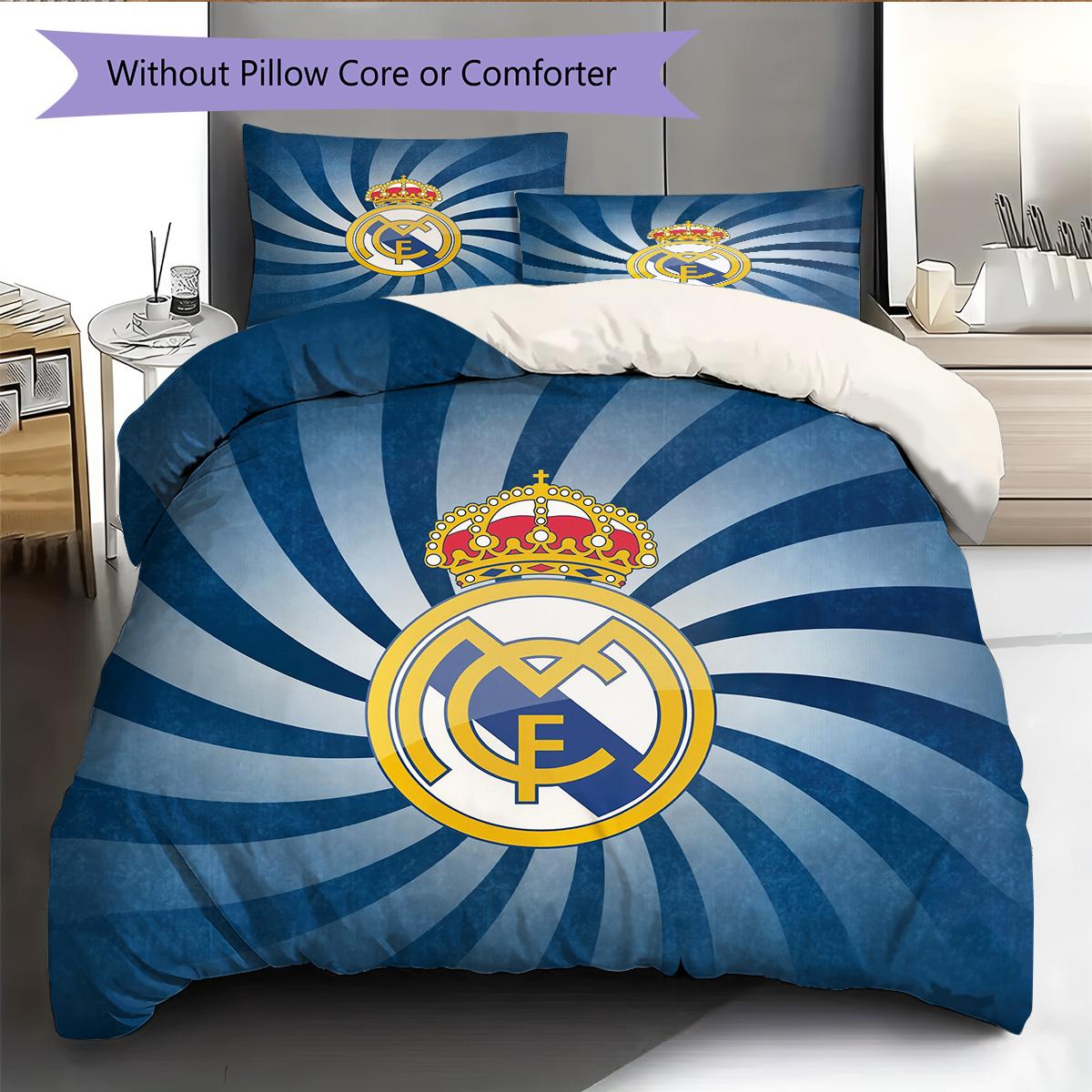 Real Madrid C.F. Mönstrat Sängkläder Täcke Set Heminredning Gåva (1 * påslakan + 2 * örngott utan kärna)