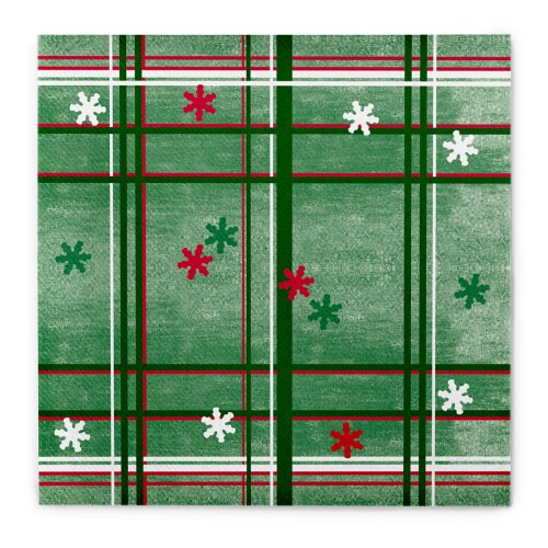 Sovie HORECA Serviette Tim in Grün-Rot aus Linclass® Airlaid 40 x 40 cm, 50 Stück - Weihnachten Karos Eiskristalle