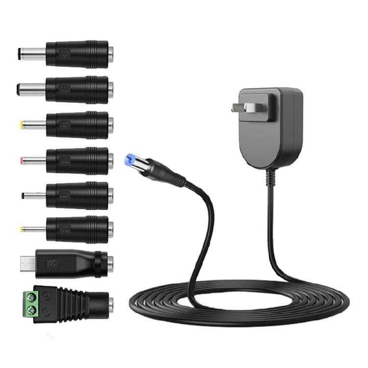 3-12V Justerbar Strømadapter 15W med Overbelastningsbeskyttelse 8 Utbyttbare Kontakter Lader