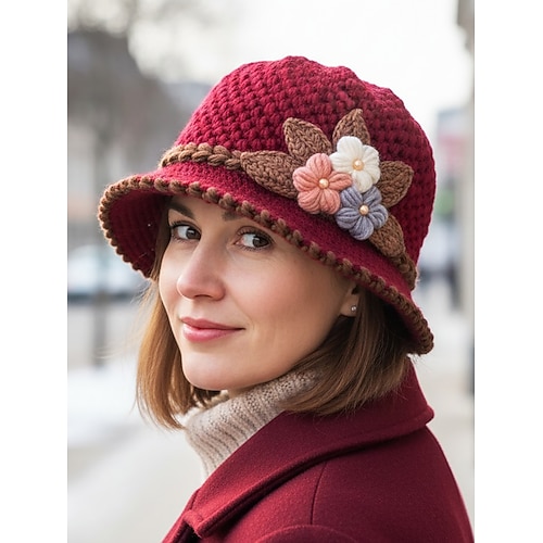 berretto da donna in lana lavorata a maglia – morbido materiale di lana, vari colori, decorazioni floreali 3D, fodera in pile per il calore, perfetto per Natale e attività invernali all'aperto