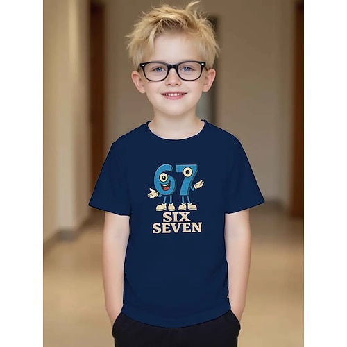 Cotone Bambini Ragazzi Blu Nero Grafico Gergo divertente 67 Maglietta Blusa Girocollo Manica Corta All'aperto Abbigliamento Quotidiano Moda Streetwear Designer Stampa Estate