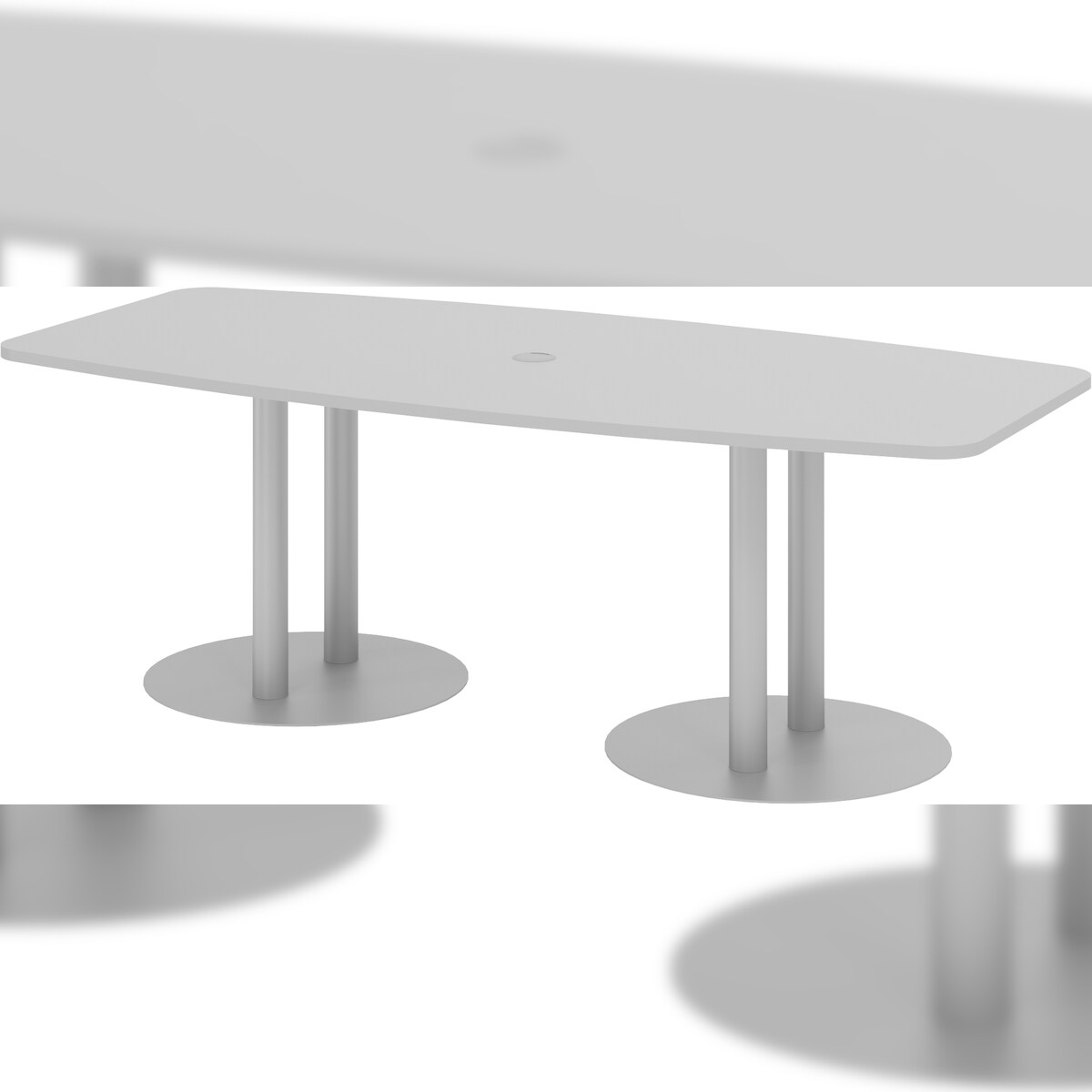 bümö Konferenztisch oval 220x103 cm großer Besprechungstisch in grau, Besprechungstisch mit Säulen in Silber, Meetingtisch für 8 Personen, XL-Tisch