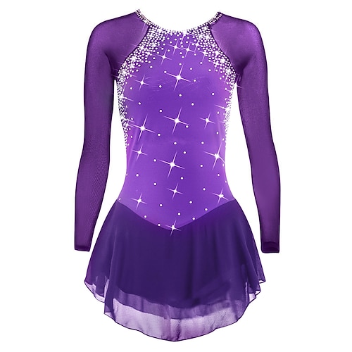 Vestito da pattinaggio artistico Per donna Da ragazza Pattinaggio sul ghiaccio Vestiti Lilla Nero Bianco Scollatura posteriore Retato Elastene Elevata elasticità Addestramento Competizione Vestiti da