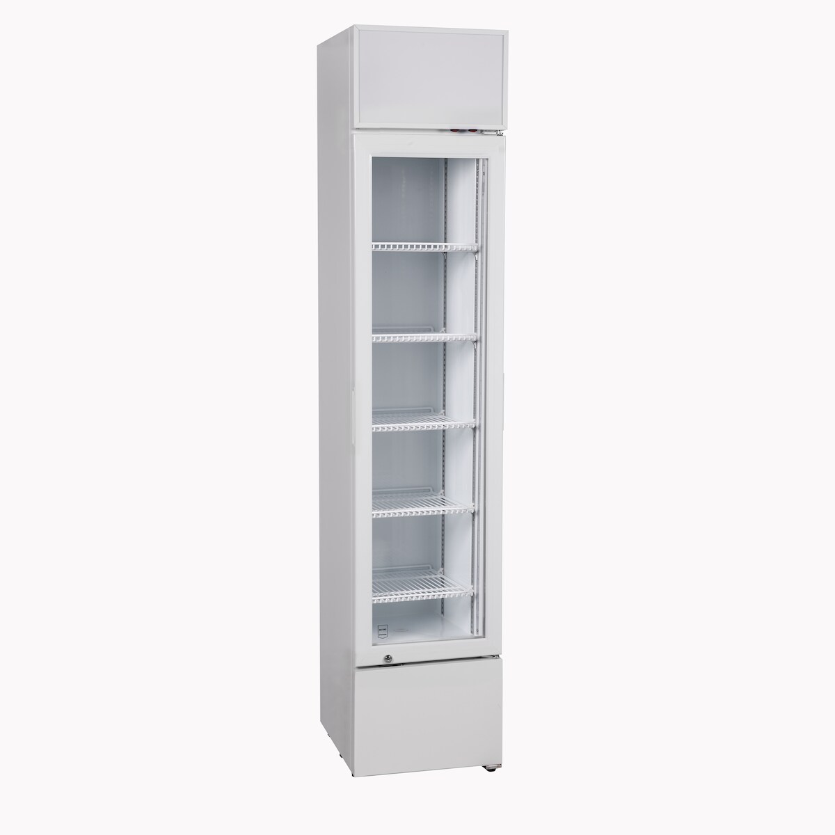 METRO PROFESSIONAL Schlanker Getränkekühlschrank GSC2133, Metall/Glas, 39 x 47.5 x 188 cm, 133 L, statische Kühlung, 200 W, mit Schloss, weiß
