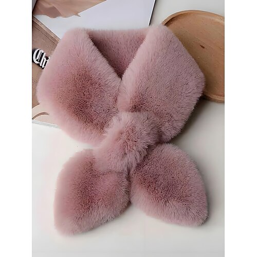 sciarpa natalizia in pelliccia sintetica da donna, morbido scaldacollo con nodo incrociato in peluche, elegante scialle invernale per feste e regali