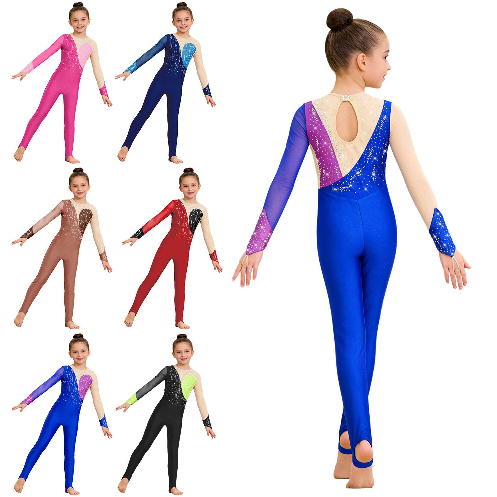 Flickor Barn Konståkningsdräkt Glänsande Strass Jumpsuit Skir Mesh Ärmlös Body Gymnastik Balett Dansdräkt cm svart