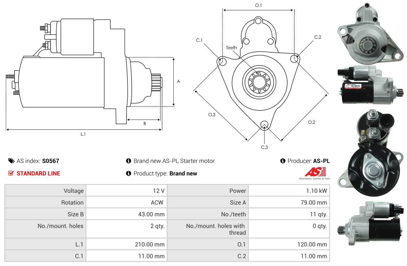 AS-PL Starter S0567 12V für VW 02E911023 02E911023S 02E911023SX