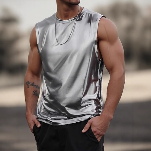 Per uomo Canotta Senza Maniche Girocollo Estate Semplice Punk Moda Designer All'aperto Casuale Fitness Argento Oro Maglietta Top per Uomo