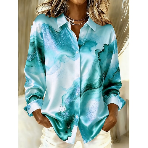 Per donna Camicia Grafico Geometrico Vintage Elegante Moderno Manica Lunga Colletto a Camicia Top Regolari Quotidiano Ferie Blu Rosa Oro Verde Autunno Inverno