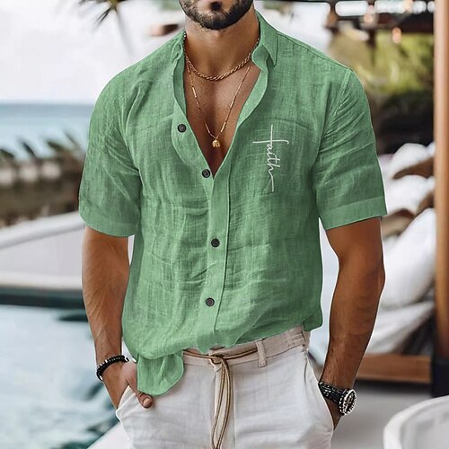 Per uomo Camicia di lino Camicia casual Camicia in cotone e lino Camicia con Bottoni Fede Vacanza Abbigliamento quotidiano Nero Bianco Verde chiaro Rosa Manica Corta Bavero Tutte le stagioni