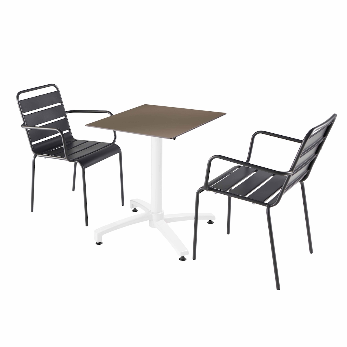 Oviala Business Set Terrassentisch aus taupefarbenem Laminat und 2 grauen Sesseln