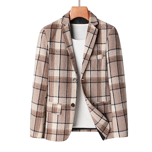 Per uomo Giacca blazer Blazer in Tweed Colletto ad incastro Moda Classico Casual Plaid Blazer Blazer in tweed Blu Kaki Grigio Vestibilità su misura Monopetto Due Bottoni
