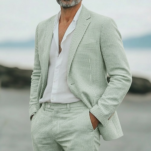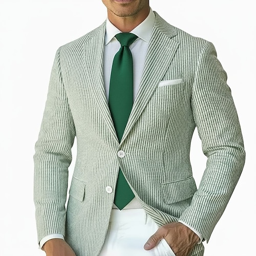 Per uomo Giacca blazer Colletto ad incastro Festa di San Patrizio A righe Blazer in seersucker Rosa Azzurro cielo Verde salvia Vestibilità su misura Monopetto Due Bottoni