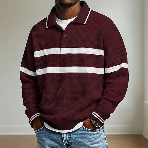 Per uomo Strisce orizzontali Magliette Polo a Nido d'Ape Polo da rugby Polo da Rugby Manica Lunga Magliette polo Bavero Abbigliamento Sportivo Casual Scuola Athleisure Abbigliamento quotidiano Stampa