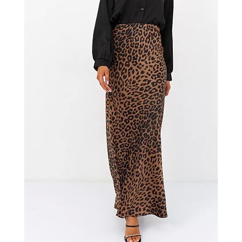 Per donna Gonna Moda Sexy Maxi Vita Alta Gonne Leopardo Arricciato Elasticizzato Quotidiano Streetwear Bianco Marrone Beige Primavera Poliestere