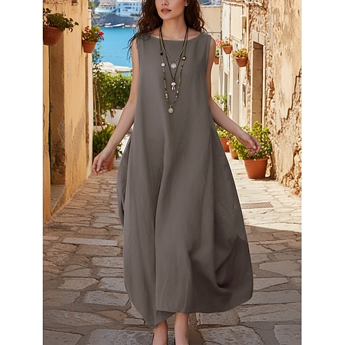 Per donna Abito lungo maxi Abito Boho 100% cotone Abito a Tubino Vestito Estivo Moda Classico Moderno All'aperto Vacanza Uscire Vestibilità regolare Semplice Senza Maniche Girocollo Viola Marrone Blu
