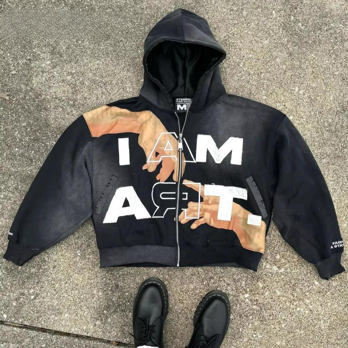ZYLLO Hip-Hop Trendy Streetwear Y2K Harajuku Amerikanisch Retro Buchstaben Print Reißverschluss Hoodie Punk Lässig Bunt Übergroßes Sweatshirt cm schwa