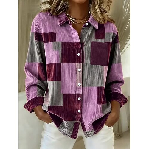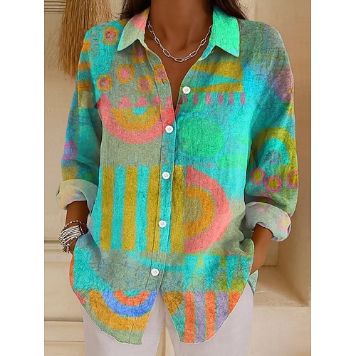 Per donna Camicia Grafico Geometrico Elegante Moderno Casual Manica Lunga Manica a Vescovo Colletto a Camicia Top Regolari Quotidiano Ferie Stampato Rosa Blu Arancione Verde Estate Primavera