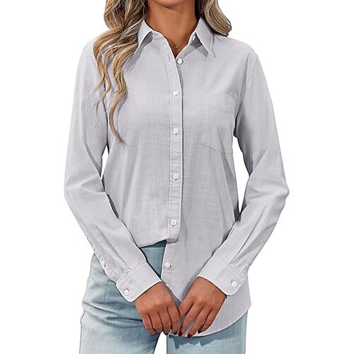 Per donna Blusa Tinta unica Elegante Casual Manica Lunga Colletto a Camicia Top Regolari Quotidiano Tasca Bottoni Bianco Rosa Arancione Verde Estate Primavera Autunno