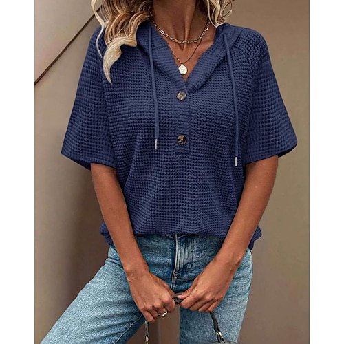 Per donna Camicia Blusa Semplice Vintage Elegante Manica Corta Scollo a V Top Regolari Top corti Quotidiano Ferie Uscire Traforato Nero Bianco Rosa Marrone Verde Estate Primavera