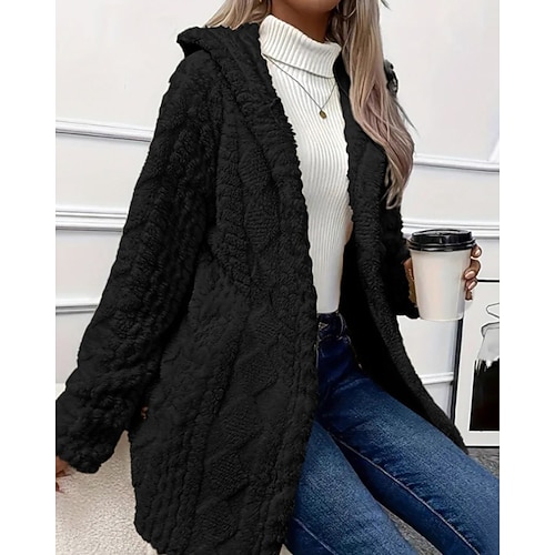 Per donna Cappotto Teddy Giacca con Cappuccio Caldo Confortevole Bottoni Casual Semplice Vacanza Uscire Weekend Regolare Felpa con Cappuccio Vestibilità regolare Manica Lunga Capispalla Nero Bianco