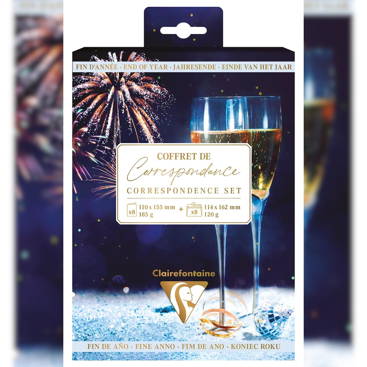 Clairefontaine 5x Thematisches Korrespondenzset, 8 Umschläge Pollen C6 (114x162mm) 120g + 8 Doppelkarten 110x155m 185g, Jahresende - 81004C