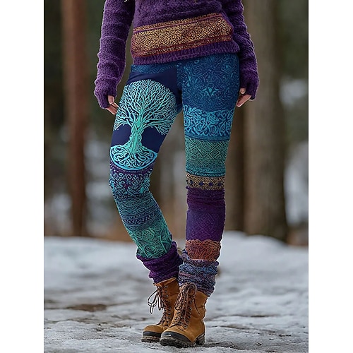 Leggings Boho Viking da donna vacanza stile etnico vintage a vita alta a lunghezza intera Stampa 3D astratta di un albero grafica ad asciugatura rapida traspirabilità morbida elastica formale