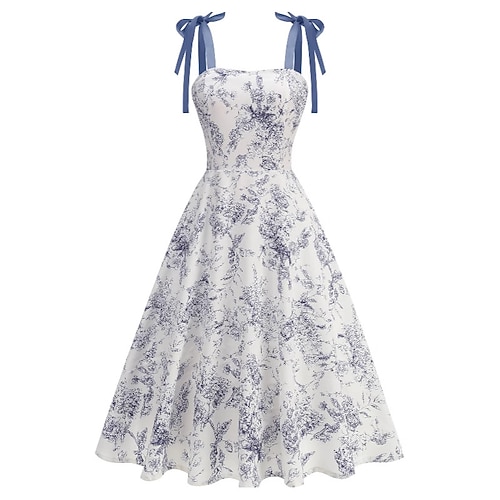 Elegante Classico Anni 1950 Midi Abito a Linea Abito Swing Vestito Svasato Senza maniche Linea ad A Costume Per donna Carnevale San Valentino Mascherata Vacanza Abbigliamento Quotidiano Addio al