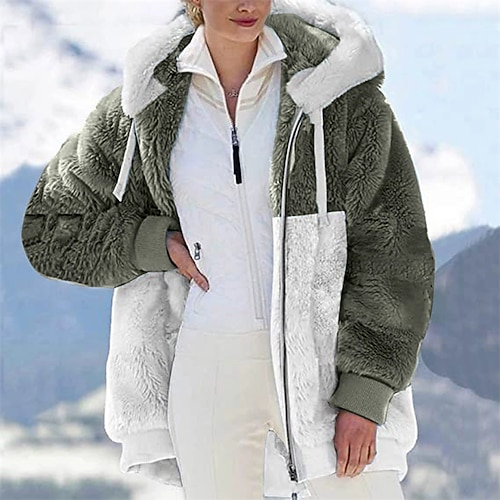 Per donna Giacca in Pile Cappotto invernale Giacca imbottita Con zip Tasca Manica Lunga Top Athleisure Blocco di colori Antivento Caldo All'aperto Viaggio Sportivo abbigliamento sportivo