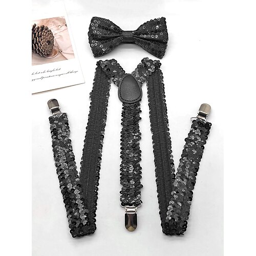 Set di bretelle e papillon in poliestere elasticizzato con paillettes – Perfetti per le feste di Carnevale e di maschera disponibili in diversi colori